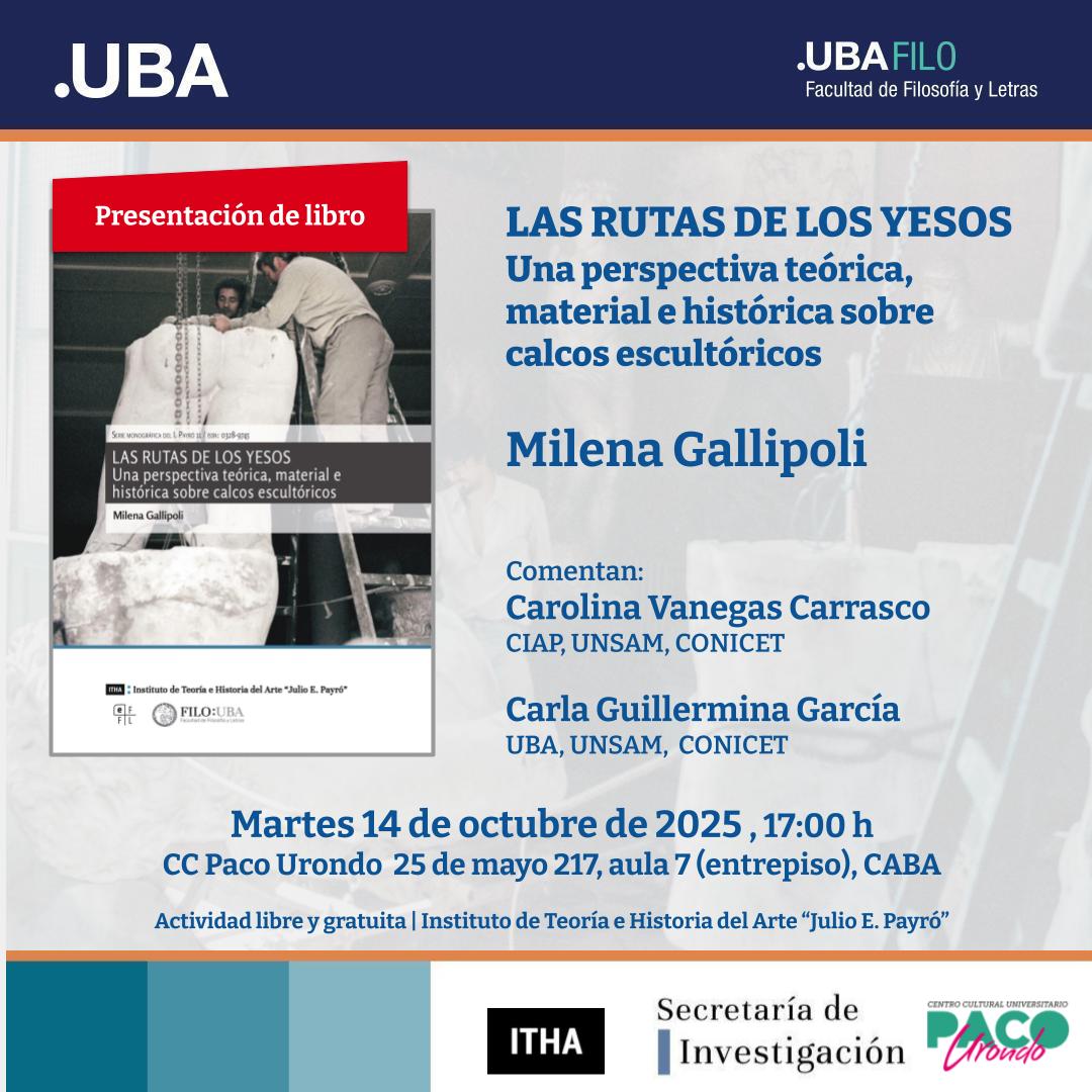 Actividad: Presentación del libro Las rutas de los yesos. Una perspectiva teórica, material e histórica sobre calcos escultóricos, de Milena Gallipoli (serie Monográfica n°12, ITHA Payró)